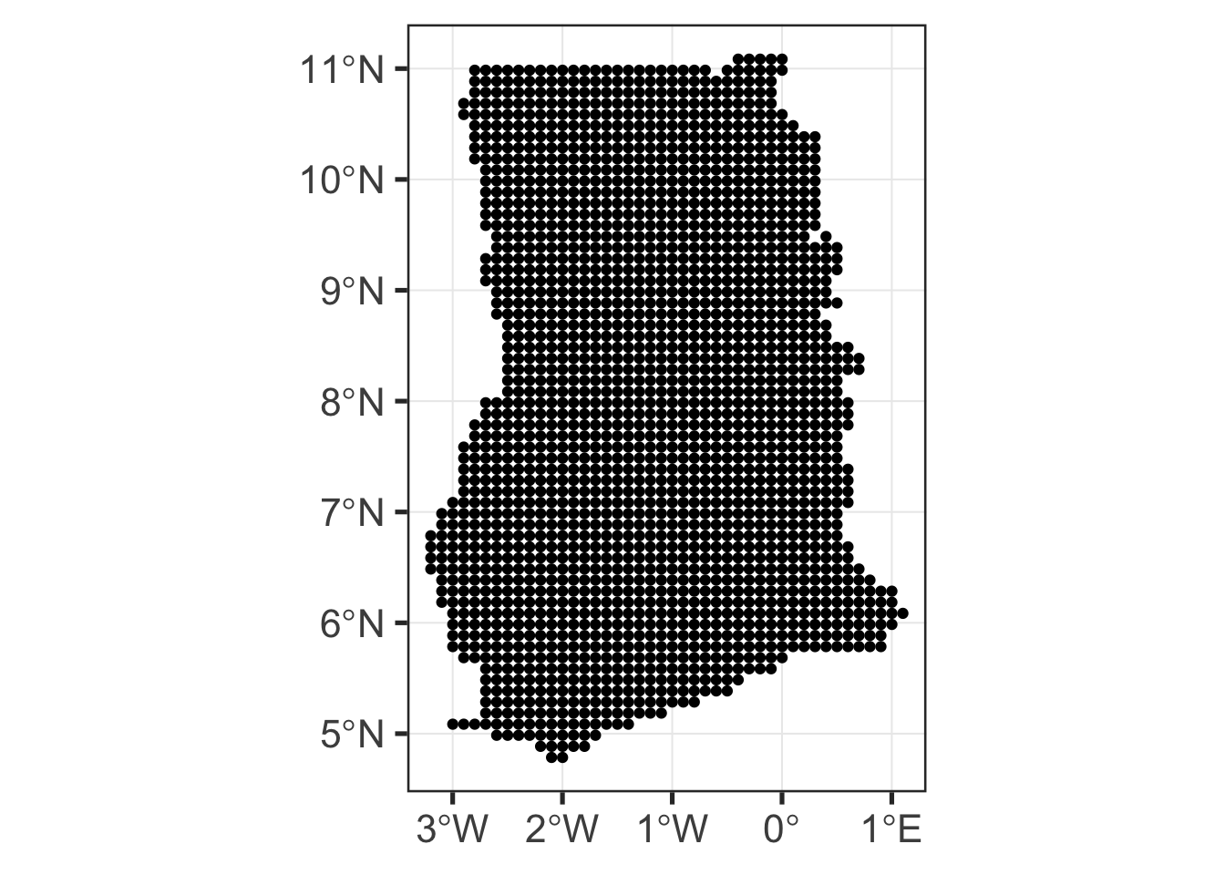 .grid <- country_border %>% st_make_grid(cellsize = 0.1, what = "centers") %>% st_intersection(country_border)